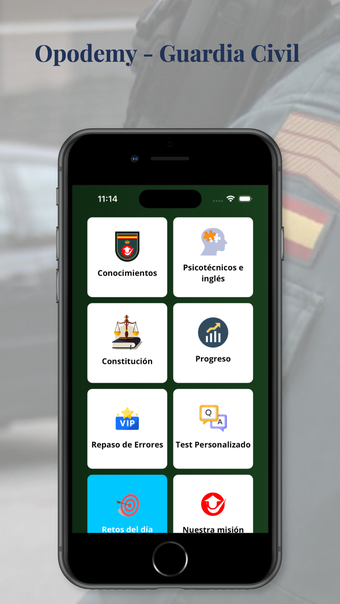 Bạn có mơ ước trở thành một guardia civil không? Opodemy GC cung cấp các giải pháp công nghệ sáng tạo để tăng cường việc đào tạo của bạn và giúp bạn đạt được mục tiêu của mình một cách hiệu quả. Với hơn 100.000 câu hỏi kiểm tra được xem xét và cập nhật, các câu hỏi chính thức từ các kỳ thi trước đó, và các loại bài kiểm tra khác nhau, Opodemy GC đảm bảo quá trình chuẩn bị kỹ lưỡng cho những người muốn trở thành guardias civiles.